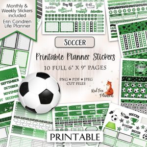 SOCCER Erin Condren Printable Planner Sticker Kit, sports, ball, soccer field, college sports, backboard, cleats, soccer ball, futbol