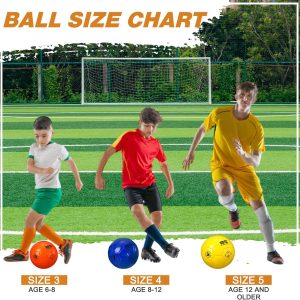 3 Sizes for Your Choice: the training soccer ball is available in 3 official sizes for you to choose from, namely size 3, size 4 and size 5; Our size 3 soccer ball is about 7.09 inches/ 18 cm in diameter and fits ages under 8 years old, size 4 soccer ball is about 7.9 inches/ 20 cm in diameter, fits for 8 to 12 years old, and size 5 soccer ball is about 8.7 inches/ 22 cm in diameter, fits for 13 years old and older; You can choose the size according to your play or practice requirement