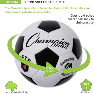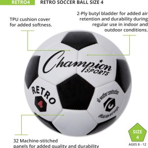 Champion Sports? Retro Soccer Ball – Classic Black & White Design, Soft-Touch TPU Cover, All-Weather Ball for Club Play, Gym Class & Recreation, Multiple Sizes