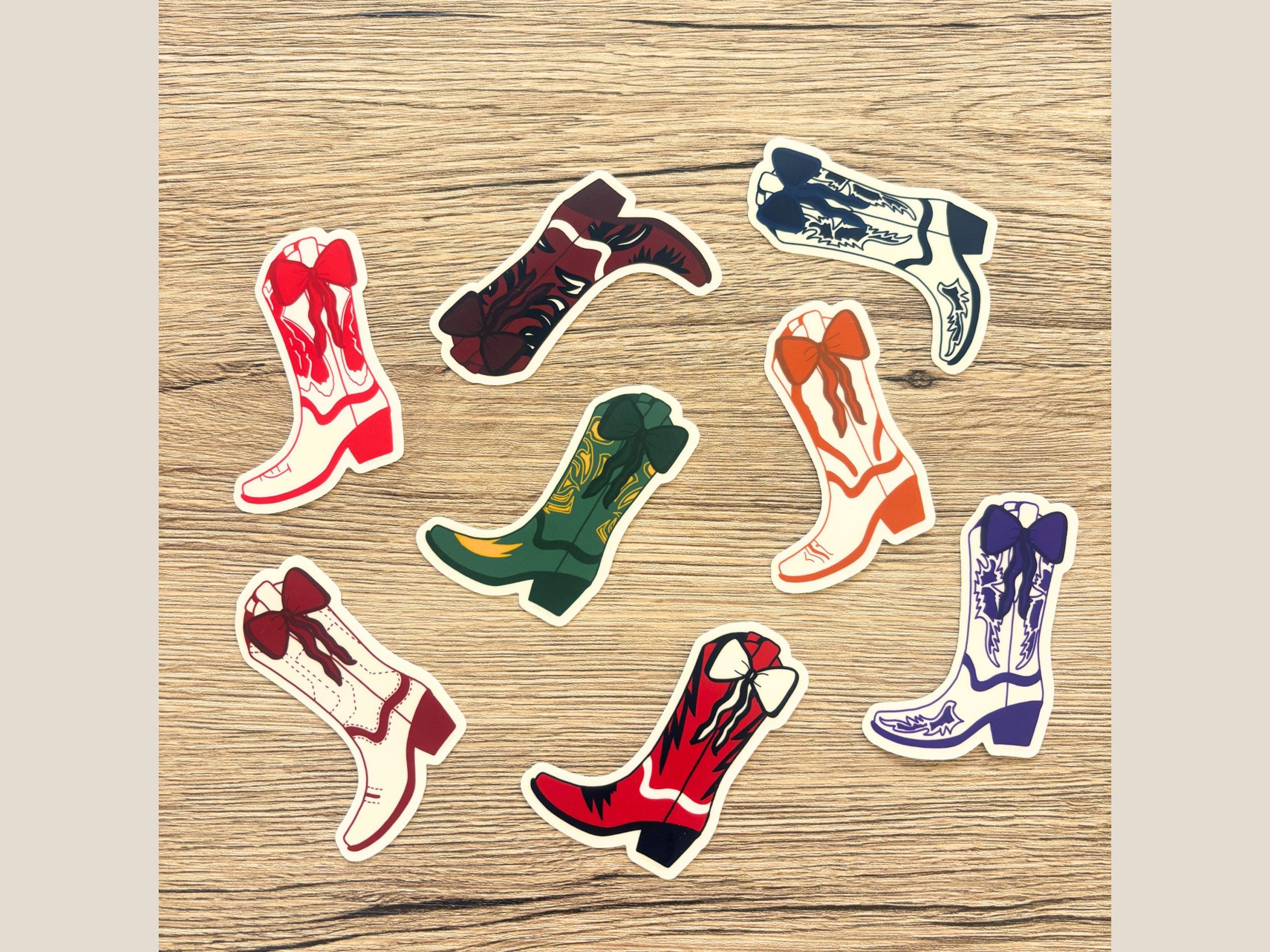 Where are my football-loving cowgirls at?! These adorable boot-and-bow stickers are inspired by your favorite team colors, making them perfect for showing off your spirit! Stick them on your water bottle, laptop, or anywhere you want a little Western flair.