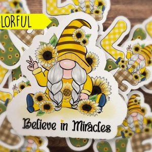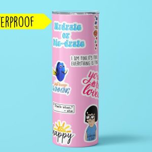 Materials: waterproof sticker paper, water based inks, premium adhesive