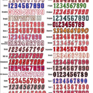 These custom 0-9 helmet number stickers are laminated, dye-cut, and durable. They come in sheets of 0-9 and consist of your choice of three colors (choose the number color and two outline colors). They will last for seasons to come. The standard size for custom numbers is 1 1/2 inches tall and are easy to apply on your helmet. Our team numbers are used by pro teams, Universities, High Schools, and major league baseball, hockey, football, and Lacrosse youth organizations worldwide.