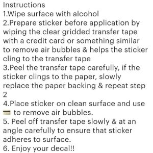 2.Prepare sticker before application by wiping the clear gridded transfer tape with a credit card or something similar to remove air bubbles & helps the sticker cling to the transfer tape