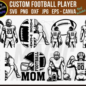 Custom Football Player SVG Bundle | Football PNG DXF EPS JPG | Editable Canva Template | Sports Shirt Design Cut Files