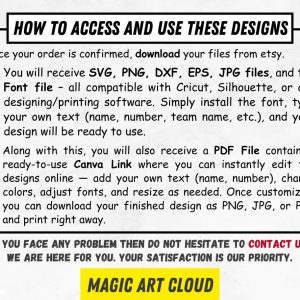 ✅ Simply install the included font into your computer or software like cricut, silhouette or an any, then type your custom name / number / team name, and your design will be ready to use.
