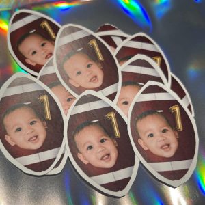 First Year Down Custom Stickers. Perfect for party favor bags or table decor.