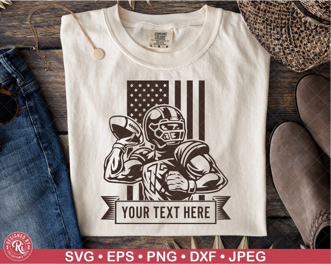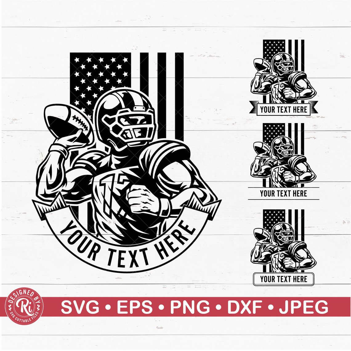 Football Player with American Flag Monogram Svg – Cut File and Instant Download for Cricut and Silhouette