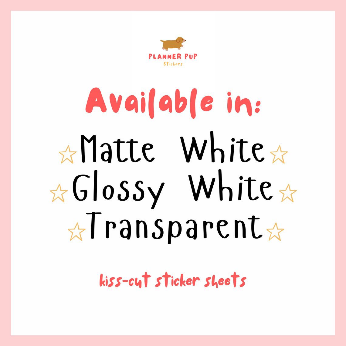Each sticker sheet contains 36 small stickers, perfect for all major brands of planners, bullet journals and calendars. Stickers are handmade by me and printed onto your choice of either recycled matte white sticker paper, gloss white sticker paper, or transparent sticker paper.