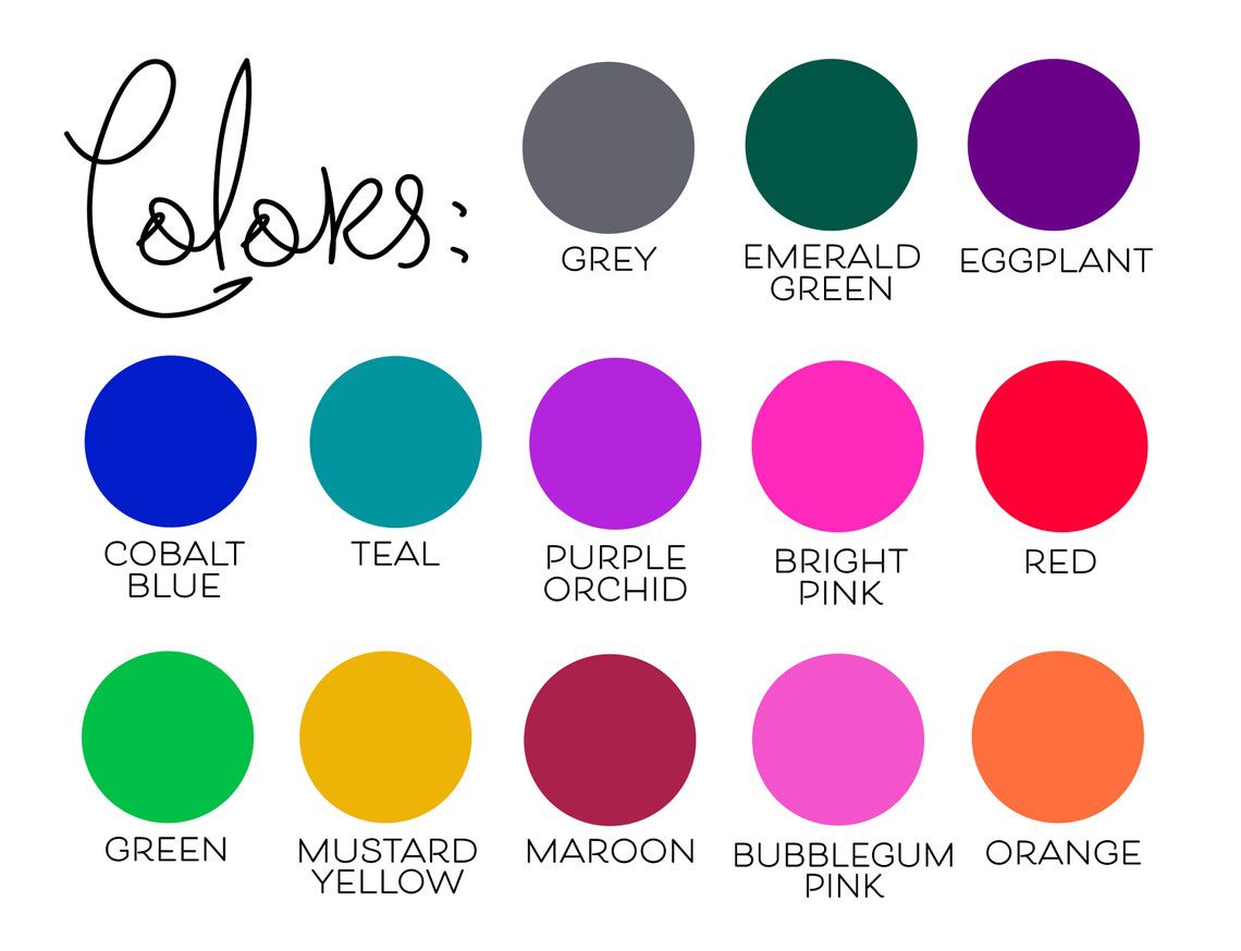 Text can be multicolored (as shown in listing pic) or one color of your choice. If you don’t see your team color in the options, feel free to message me.