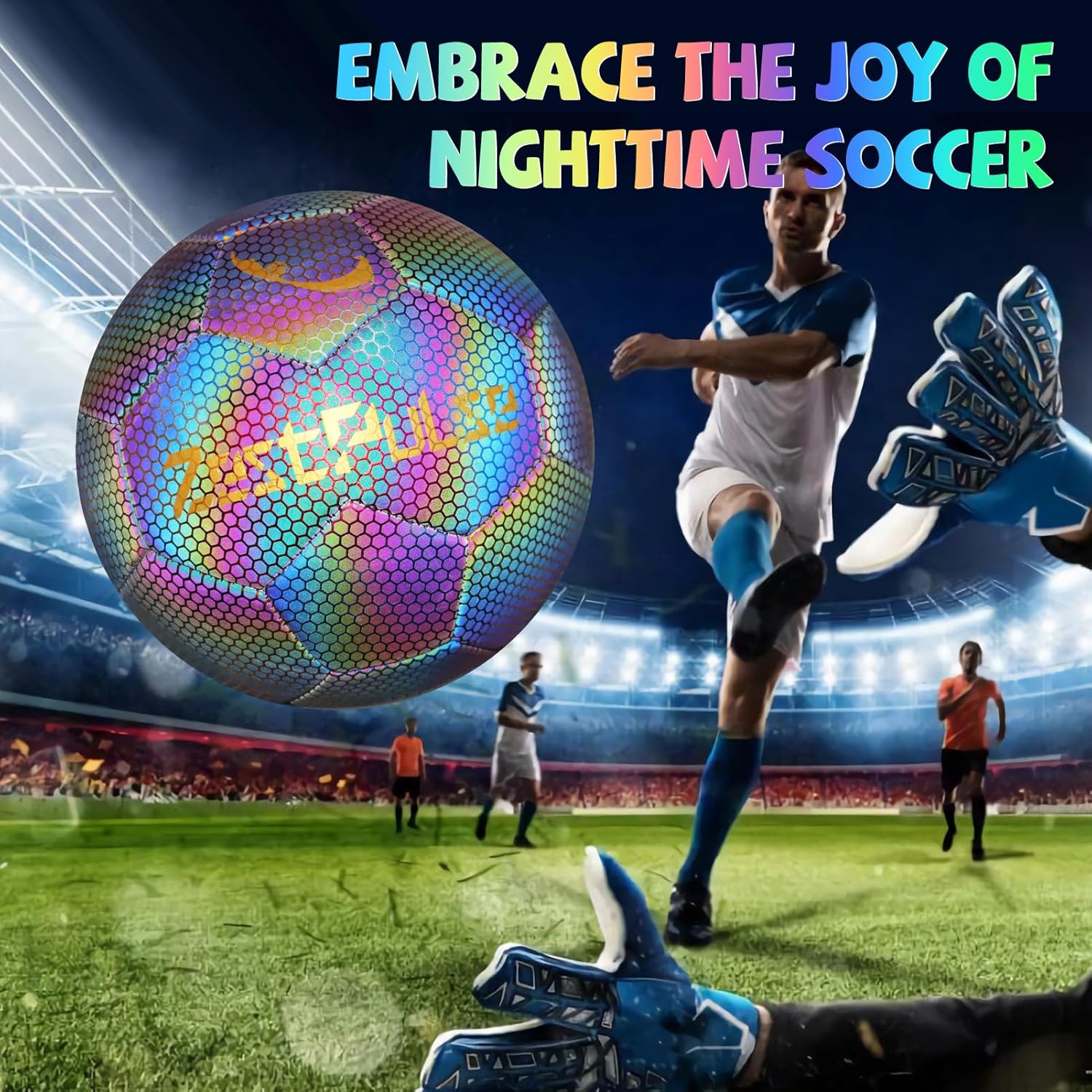 Holographic Reflective Soccer Ball Size 3, 4 5 for Kids Adults, High Visibility for Night Games and Training, Ideal Gift for Boys Girls 8-12