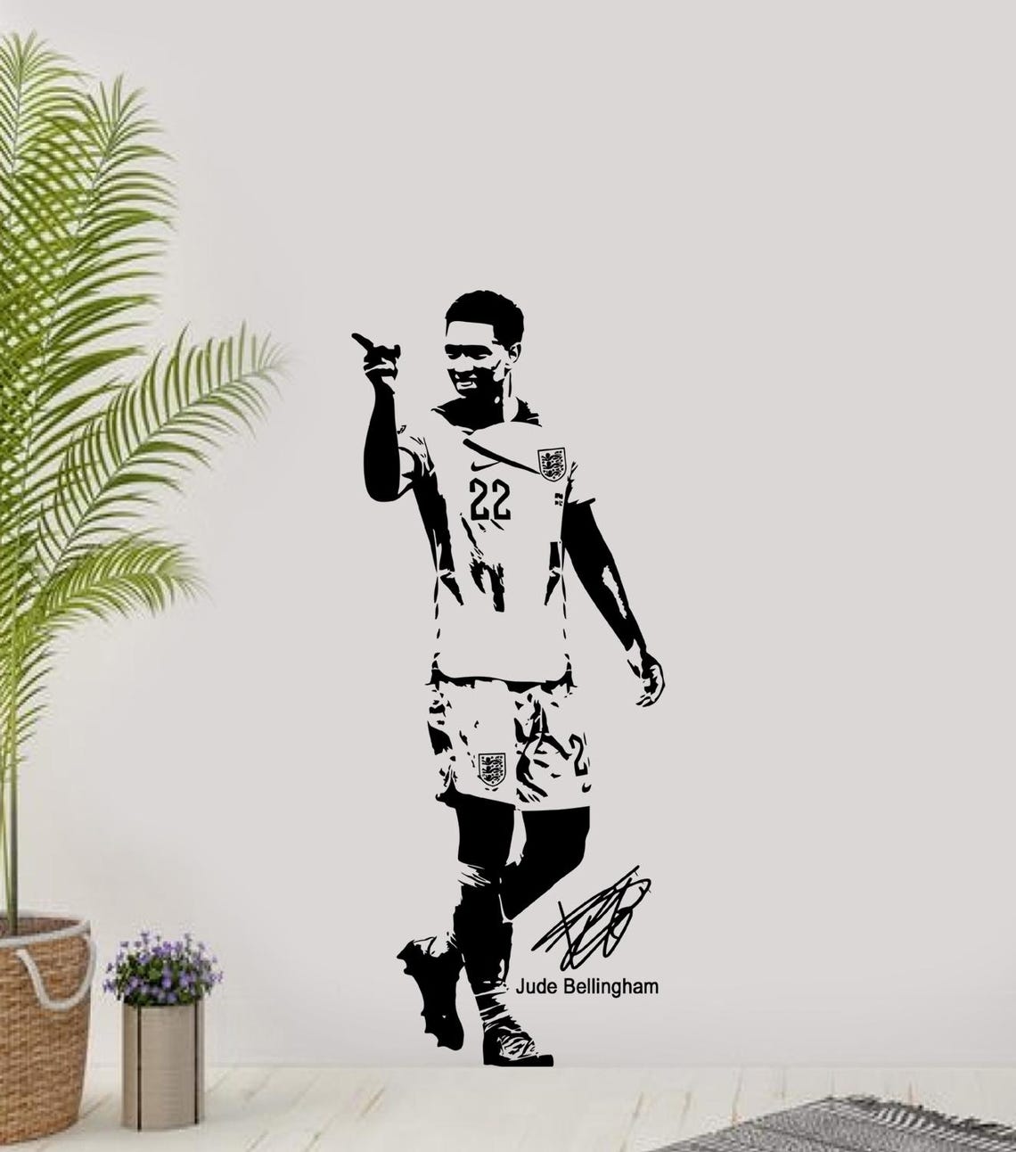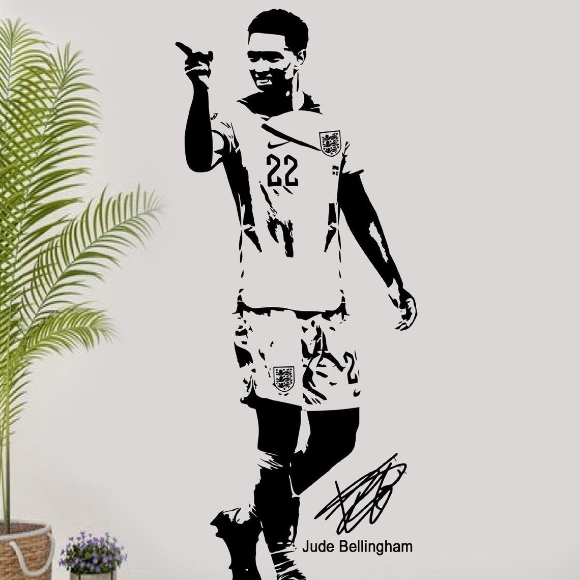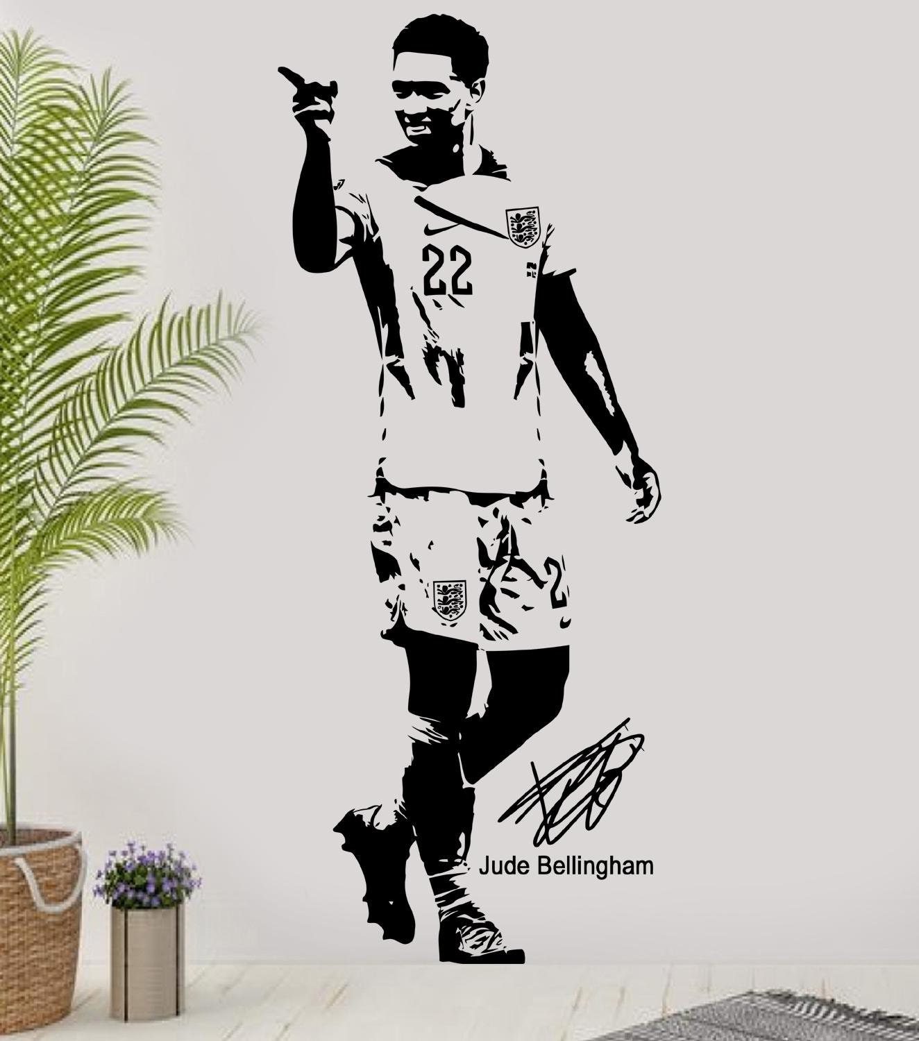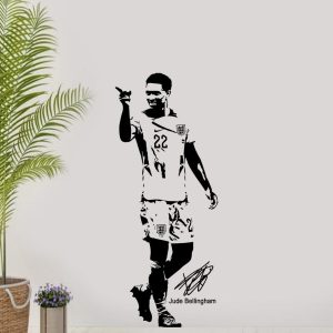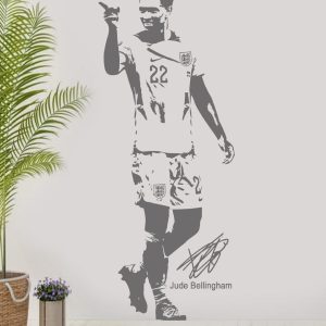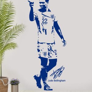 Transform your space with this high-quality Judde Belllingham England football wall sticker. Perfect for any football fan, this vinyl decal is ideal for bedrooms, living rooms, or game rooms. Show your support for one of England’s top football talents with this stylish and durable wall art.