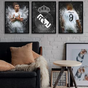 This is a set of 3 digital prints with Kylian Mbappe in Real Madrid kit.
