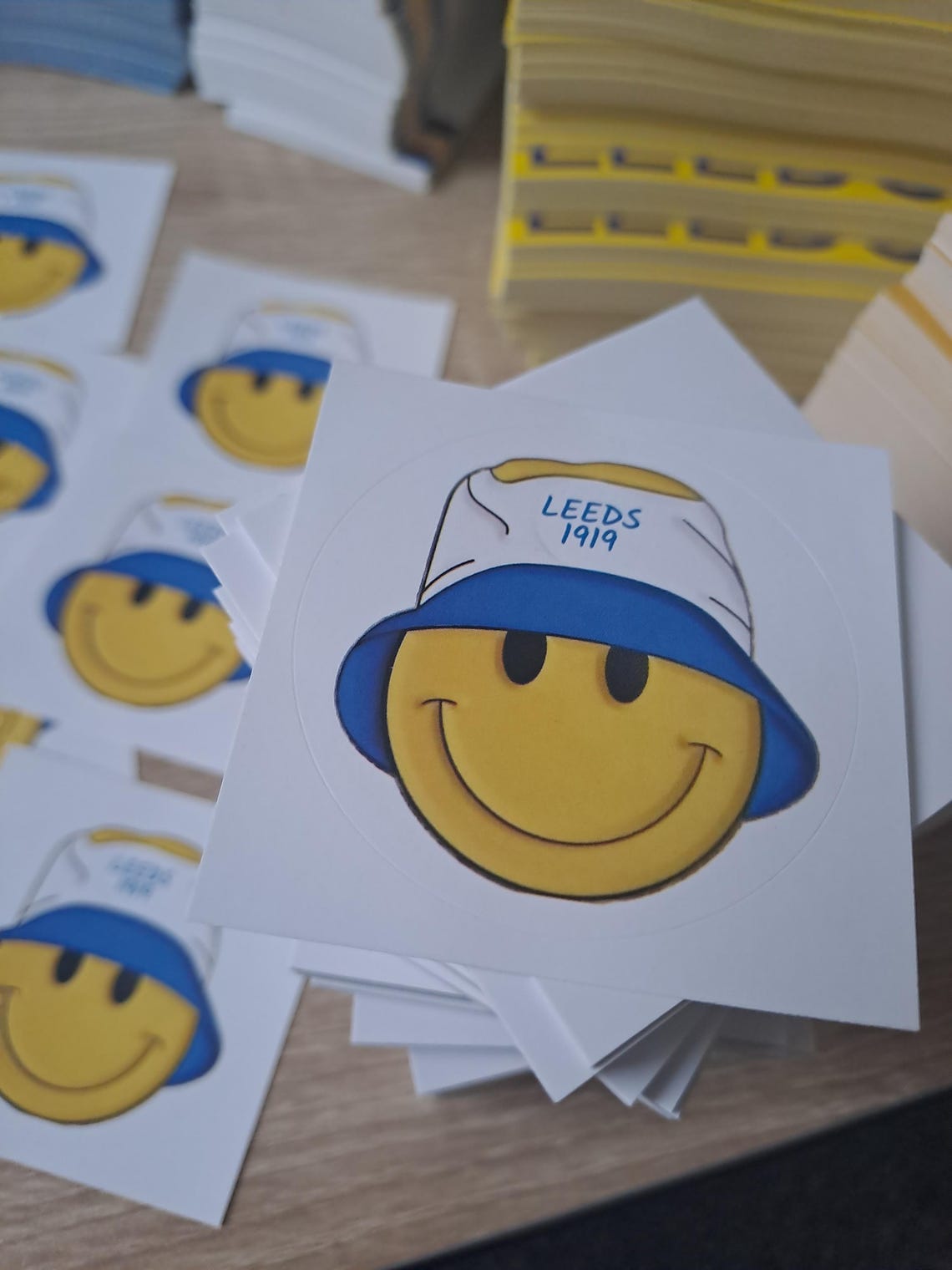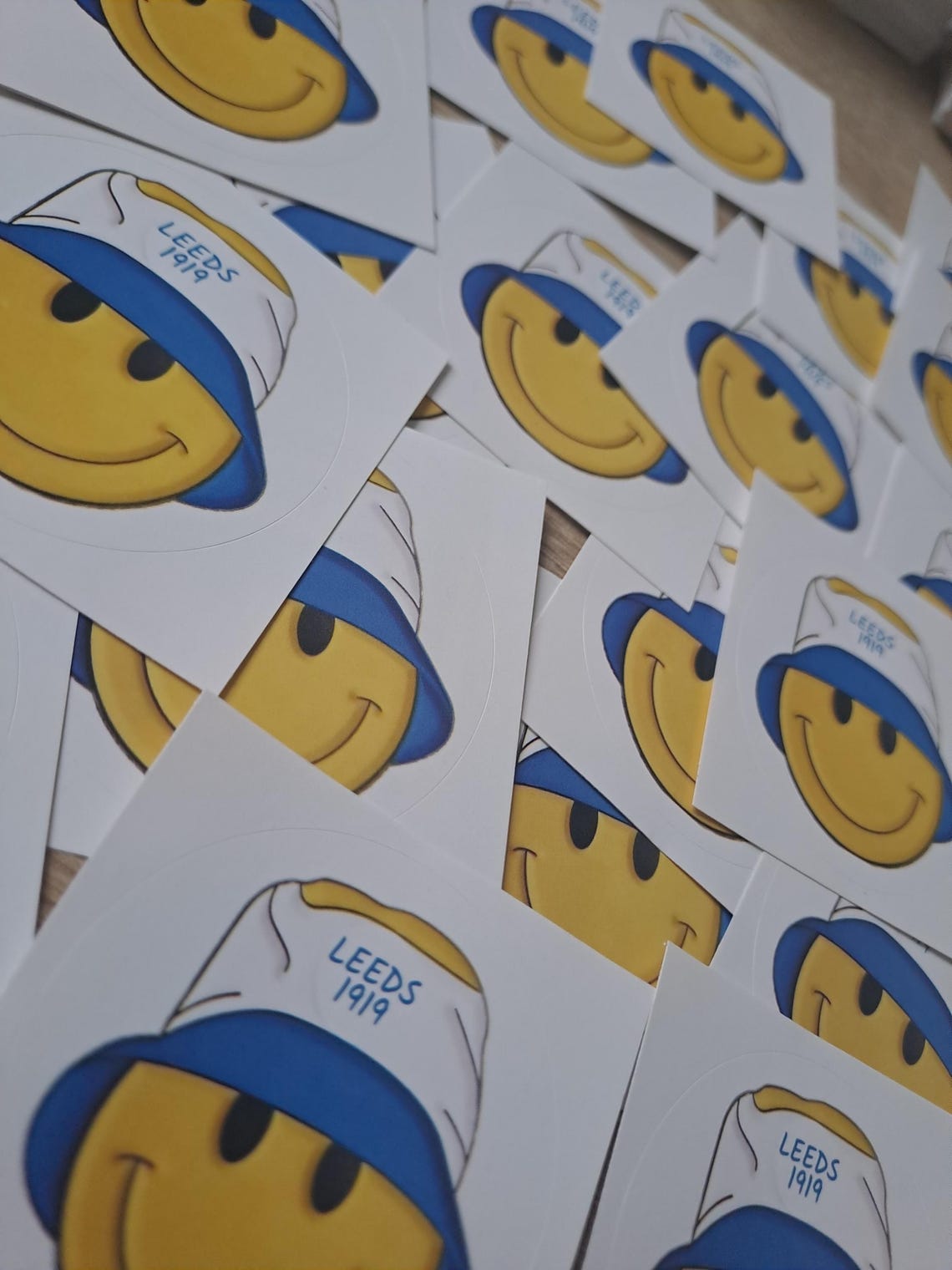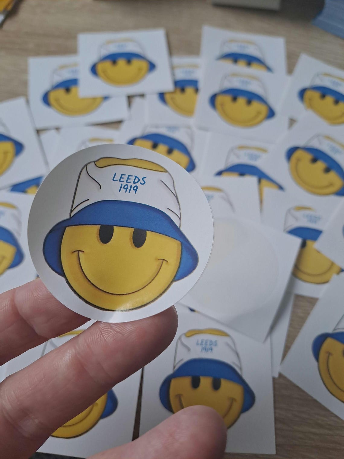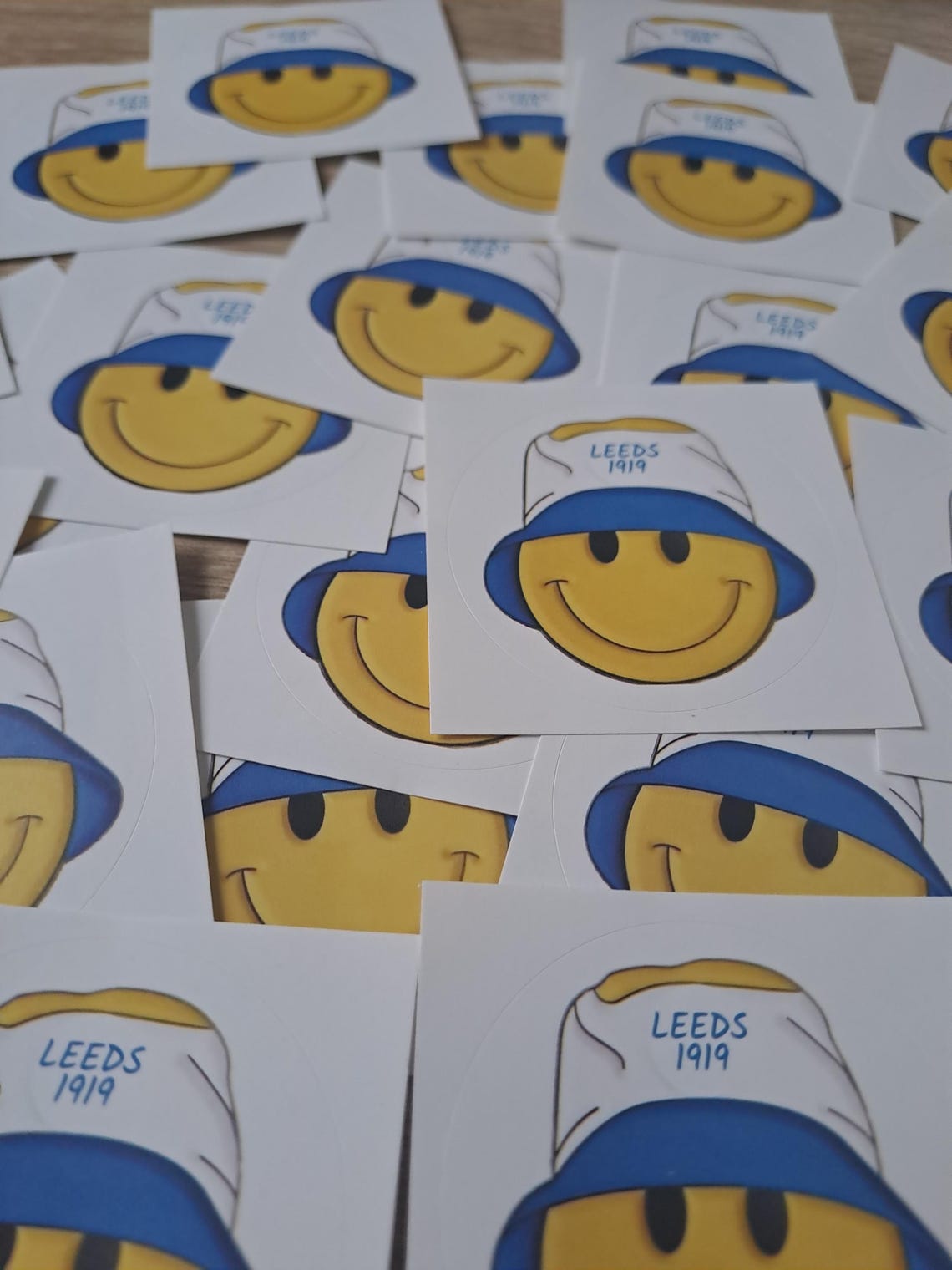 This is for 20 Leeds smiley bucket hat circle stickers.