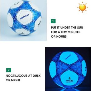 【Distinctive Luminous Pattern】(1) This football does not need a battery, as long as the light or ultraviolet radiation, in the dark can be bright, energy conservation, environmental protection. (2) LED football relies on battery light, there is a spontaneous combustion or explosion hazard, we rely on light shine football will not have such a hazard. (3) If the LED football bulb using the battery is damaged.