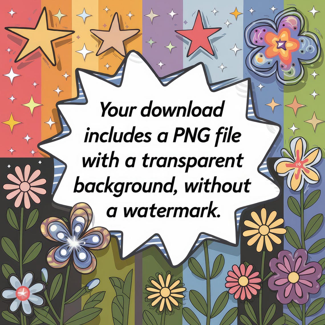 Your download will include a PNG file with a Transparent Background.