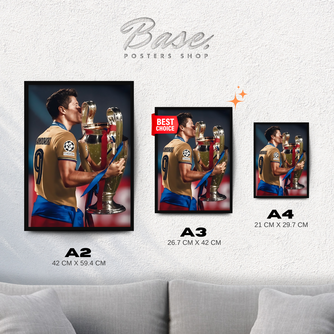 Inspiring Design: The poster vividly captures Lewandowski’s exceptional talent and hard work, reflecting his iconic moments in the Champions League.