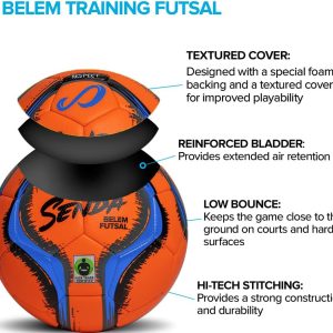Senda Belem is a low-bounce futsal training ball made with a textured cover featuring a special foam backing for a softer touch.