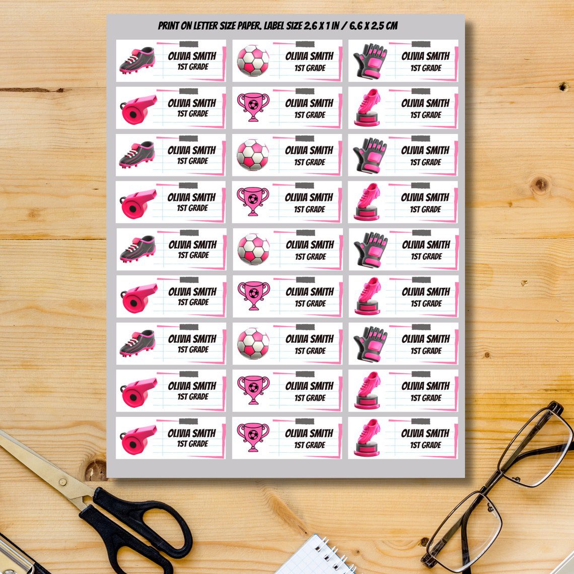 Introducing our Girls Soccer Labels Set, available for instant download. This set includes two sheets of labels in different sizes: 3.5 x 2 inches and 2.6 x 1 inches, offering versatile usage options. These labels are perfect for back-to-school needs, labeling notebooks, books, and more. They can also be used for creating eye-catching signs or tags for parties and events.