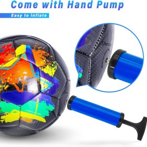 Premium Material Wins: Glitter appearance looks attractive to boys/girls/teens. This is a cool soccer balls for teens/child/boys/girls. The bladder inside is made of the industry-standard butyl rubber which holds air really well and preserves the shape of the ball. The outside is machine stitched, made of TPU leather for improved softness, bounce and durability, easier control, so it won’t cause any injuries