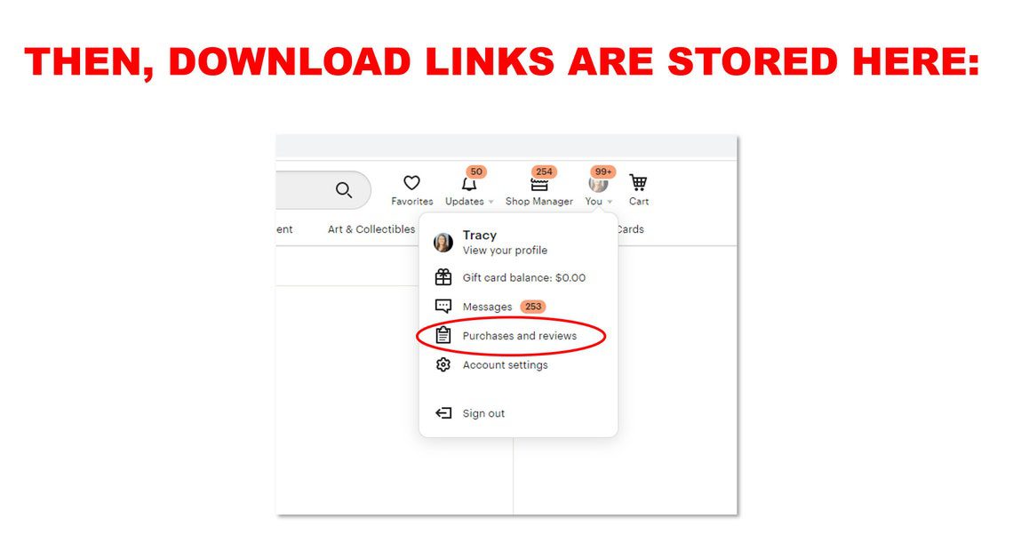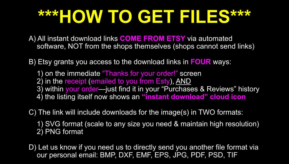 1) Instant download links COME FROM ETSY via automated software, NOT the shops themselves