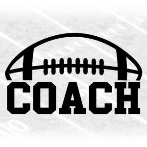 Sports Clipart: Black Word “Coach” in Collegiate Block Type with Half Football Outline on Top for Coaches – Digital Download svg png dxf pdf