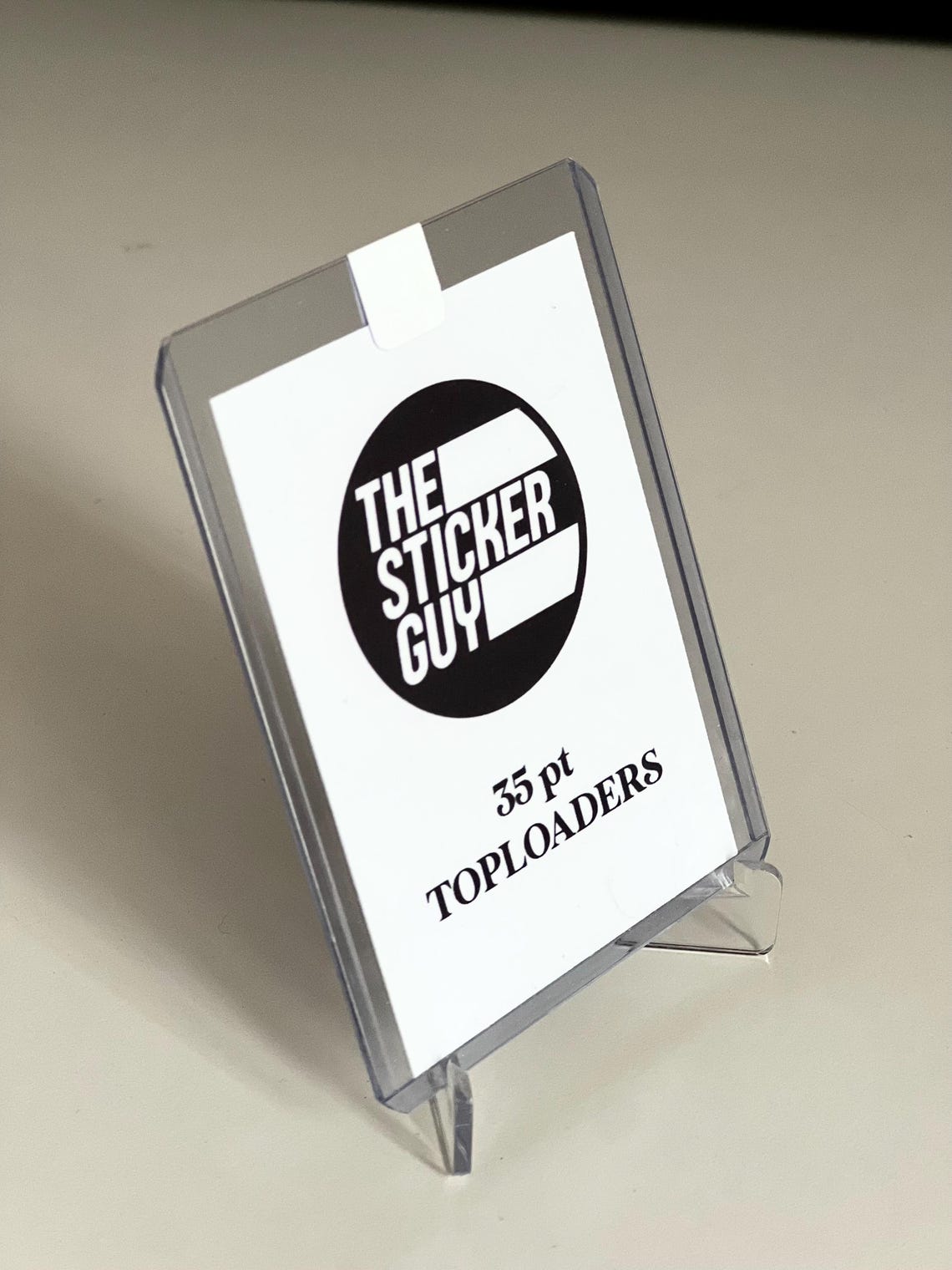 Sticker sheet of 96 top loader stickers with your own logo that fits on regular 35 pt top loaders.