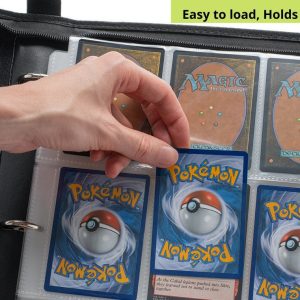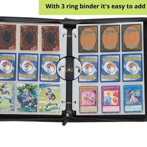 ? STYLISH: 9 pocket trading card binder has 40 transparent double-sided pages and fits up to 720 cards. Our 3 ring binder lets you easily add or remove the sheets as your collection grows.
