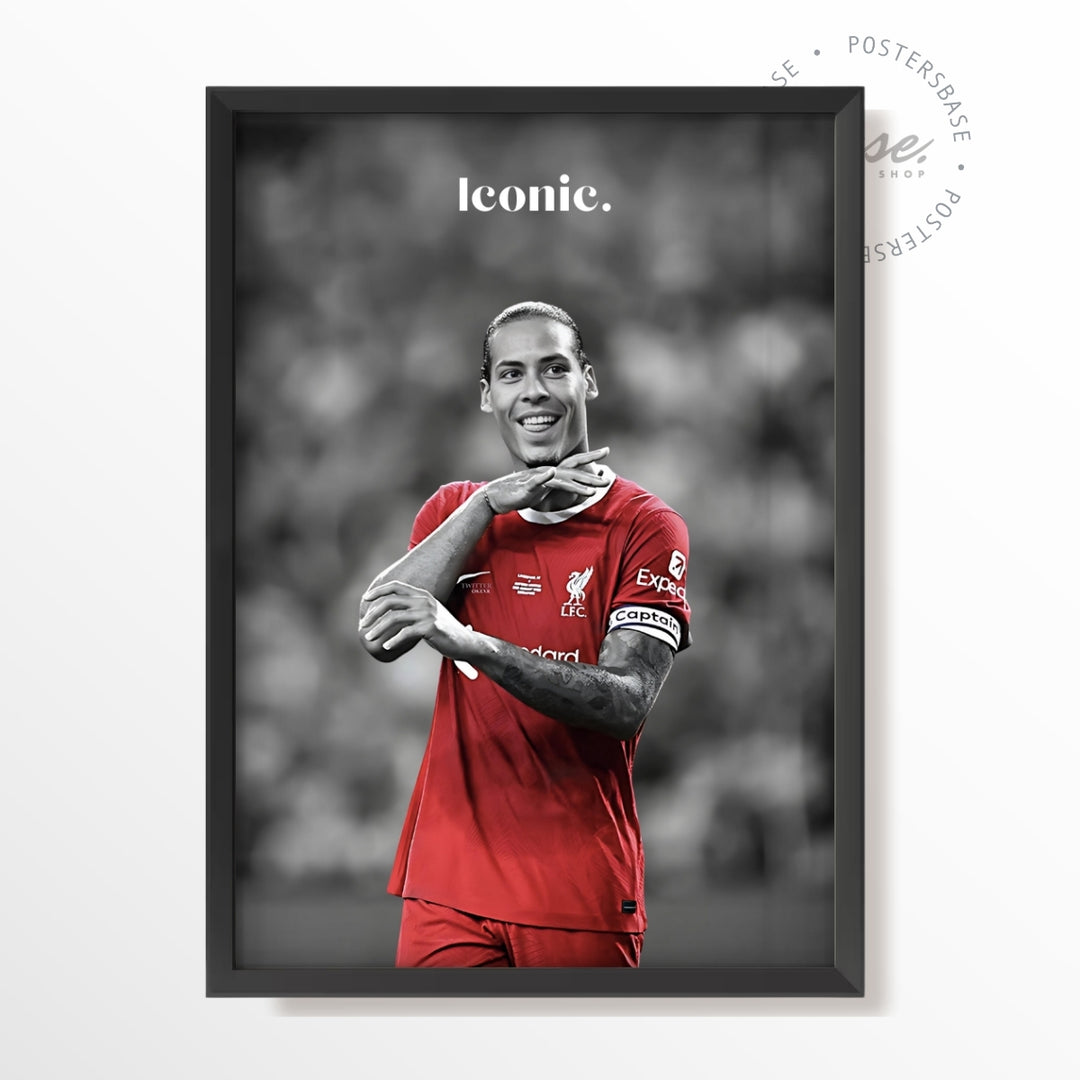 Iconic Imagery: This poster captures the essence of Virgil Van Dijk��s commanding presence on the field, making it an essential addition to any football fan��s collection.