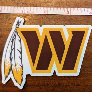 Looking for the Dan Quinn Commanders design? For all those fans out there that would like a little throwback to when the team was the Washington Redskins. How about a W similar to the Commanders but with the old school feather. This is also very similar to many high school warriors football logos. The watermark in the design pic is NOT actually in the sticker.