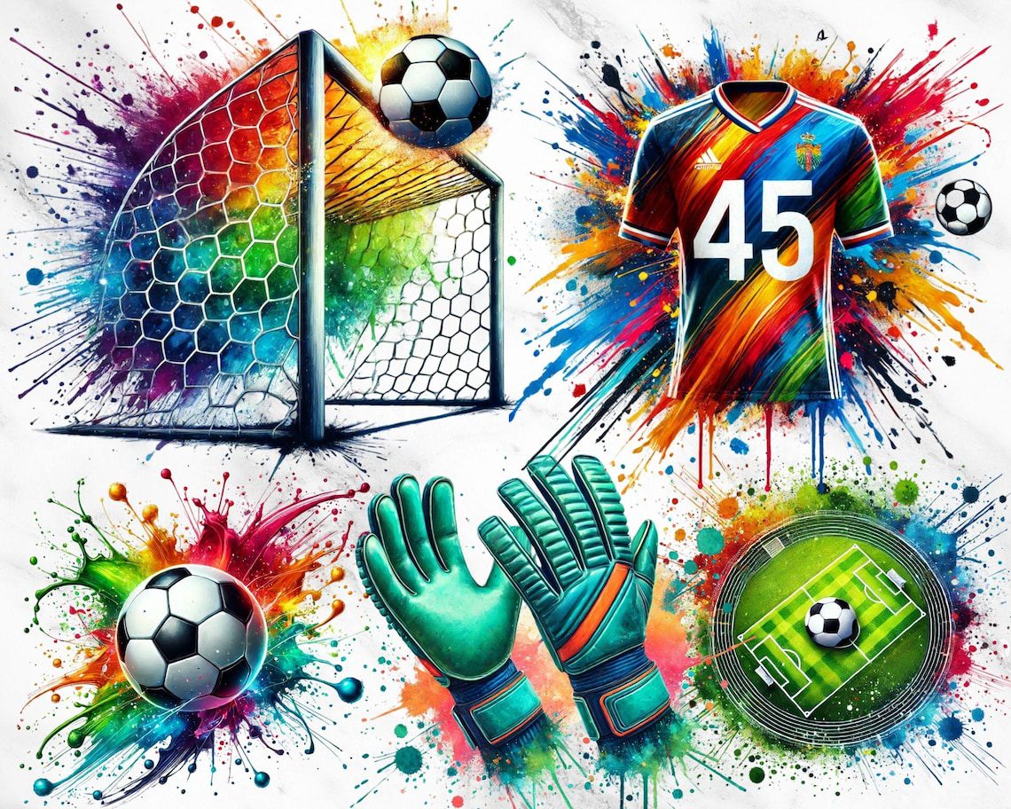 Watercolor Football Clipart Bundle | 25 Hand-Painted Soccer-Themed PNGs for Digital & Print Designs