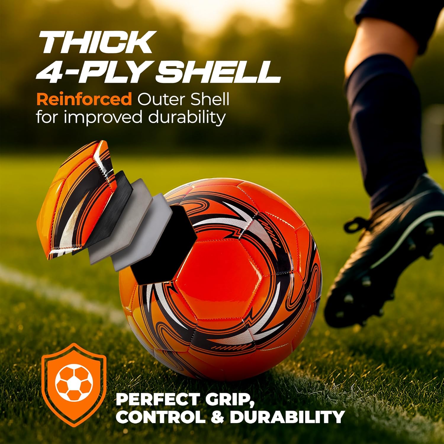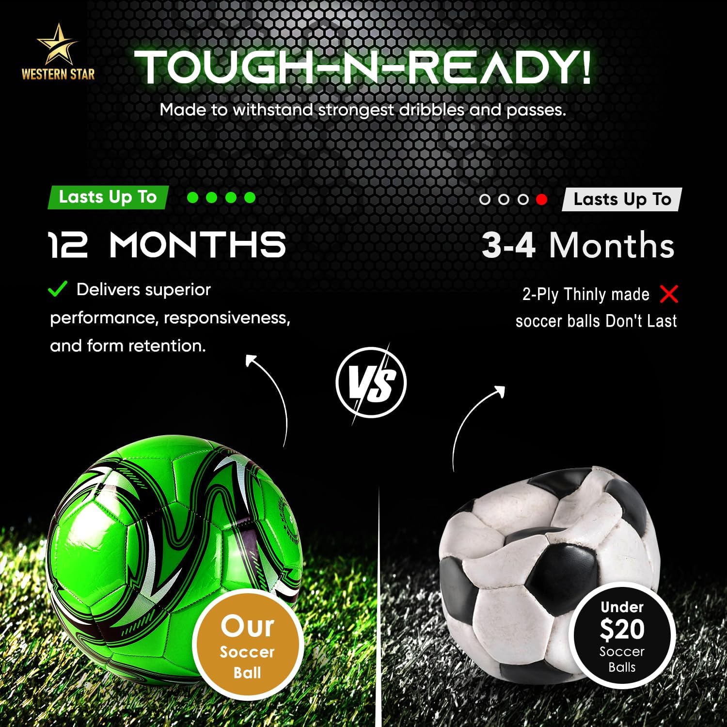 Exceptional Durability: Built with a thick 4-ply shell, our Western Star soccer ball withstands the toughest kicks and intense matches, delivering unmatched longevity; it’s perfect for players who demand the best in every game. Whether you’re diving into a thrilling match or practicing your moves, this resilient ball ensures consistent performance, letting you play fearlessly on any field while enjoying every thrilling moment.