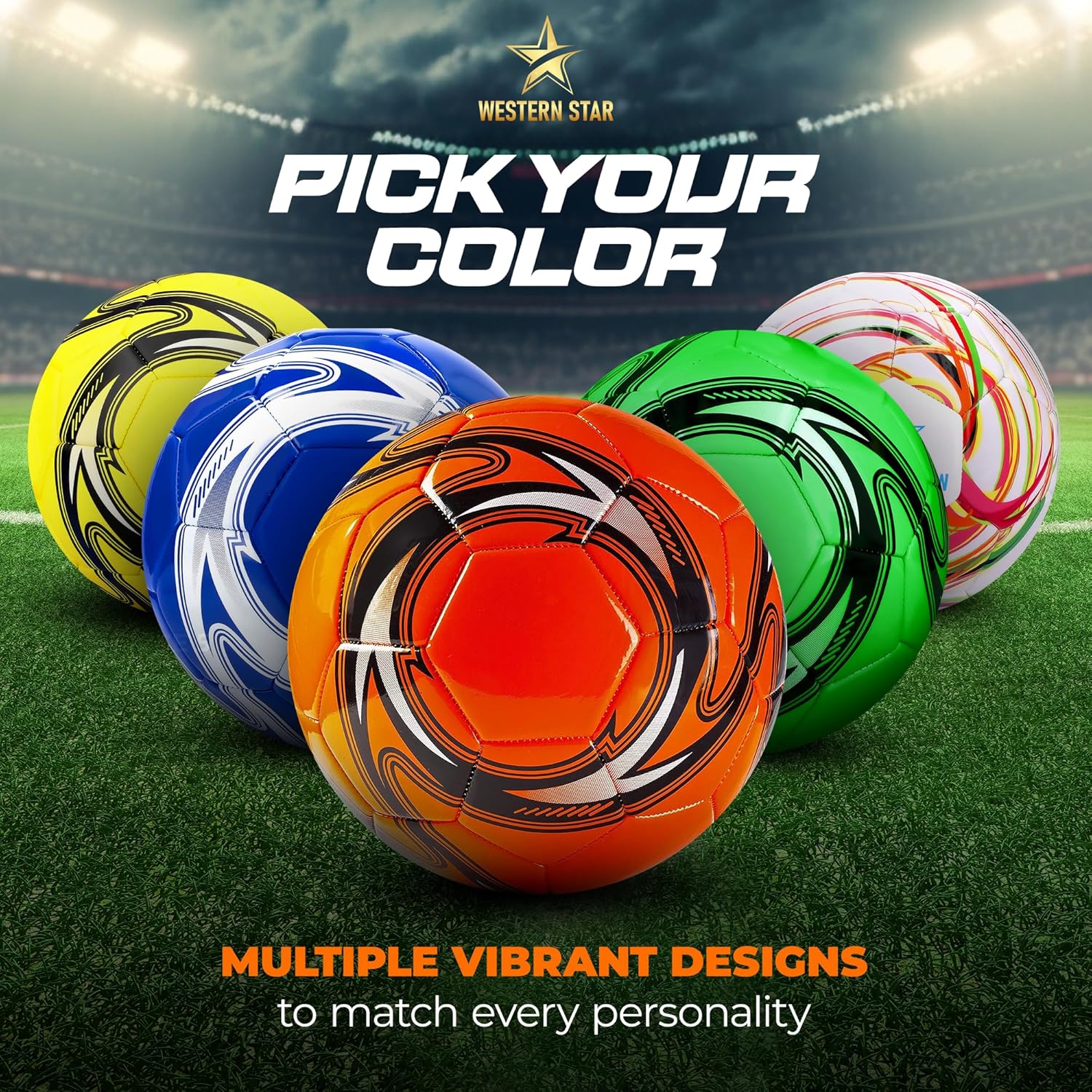 Western Star Soccer Ball Helix Size 3 & Size 4 & Size 5 – Official Match Weight – 6 Colors – Youth & Adult Soccer Players – Attractive and Durable Design
